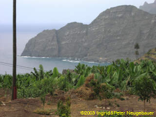 Die dritte Gemeinde im Norden der Insel ist Vallehermoso, das schöne Tal. Der Regenwald umgibt den Ort von 3 Seiten. Hier ist das Zentrum der Herstellung des Miel de palma, des Palmhonigs. Wahrzeichen der Stadt ist der Roque de Cano.